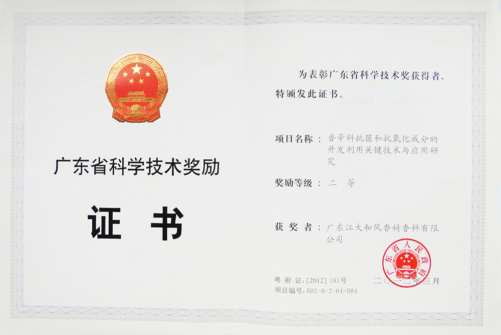 廣東省科技進(jìn)步二等獎(jiǎng)證書