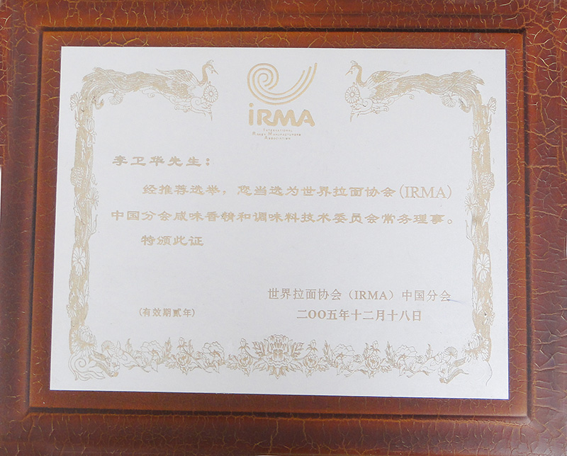世界拉面協(xié)會(huì)中國(guó)分會(huì)咸味香精和調(diào)味料技術(shù)委員會(huì)和常務(wù)理事