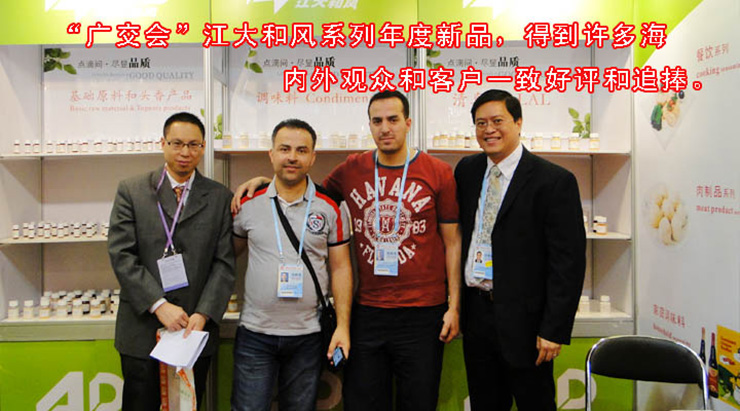 把國內(nèi)的成功復(fù)制到國外,幾乎是每一個中國企業(yè)的夙愿。作為中國香精香料行業(yè)龍頭企業(yè)廣東江大和風(fēng)也不例外。公司非常重視此次廣交會,派出了專業(yè)的技術(shù)研發(fā)團(tuán)隊和公司服務(wù)團(tuán)隊參加展會,現(xiàn)場場面火爆,人山人海,會上公司推出一系列年度新品,得到了許多海內(nèi)外專業(yè)觀眾和客戶一致好評和追捧。在展會上我遇到很多海外的客戶專程到我們的展位咨詢技術(shù)問題和了解新品,此次廣交會正如春天的到來,百花齊放。開館的的第一天,我們發(fā)現(xiàn),雖然本屆廣交會歐美采購商到會人數(shù)有所減少,購買需求有所下降,但東南亞、南美、中東等新興市場需求旺盛且增長潛力巨大,更具活力。