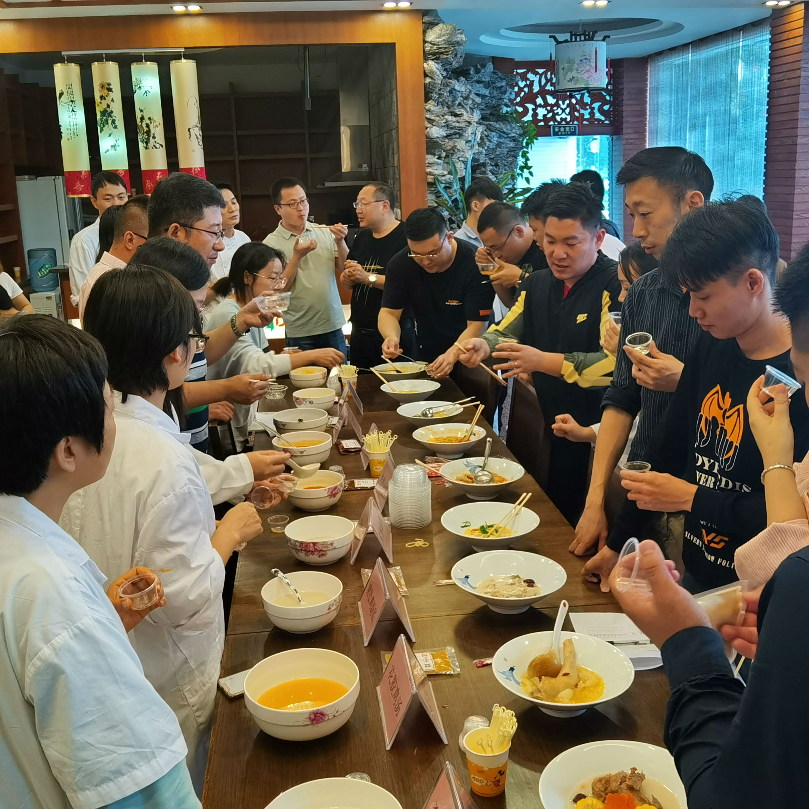 公司研發(fā)工程師,調(diào)香師,行政總廚為大家培訓(xùn)產(chǎn)品的工藝、制作流程。并做出成品讓大家品嘗,現(xiàn)場連連稱贊。