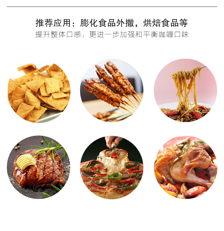 產(chǎn)品特點(diǎn):本產(chǎn)品主要是用在膨化食品的調(diào)味上,具有濃郁的咖喱口味,回味無窮;